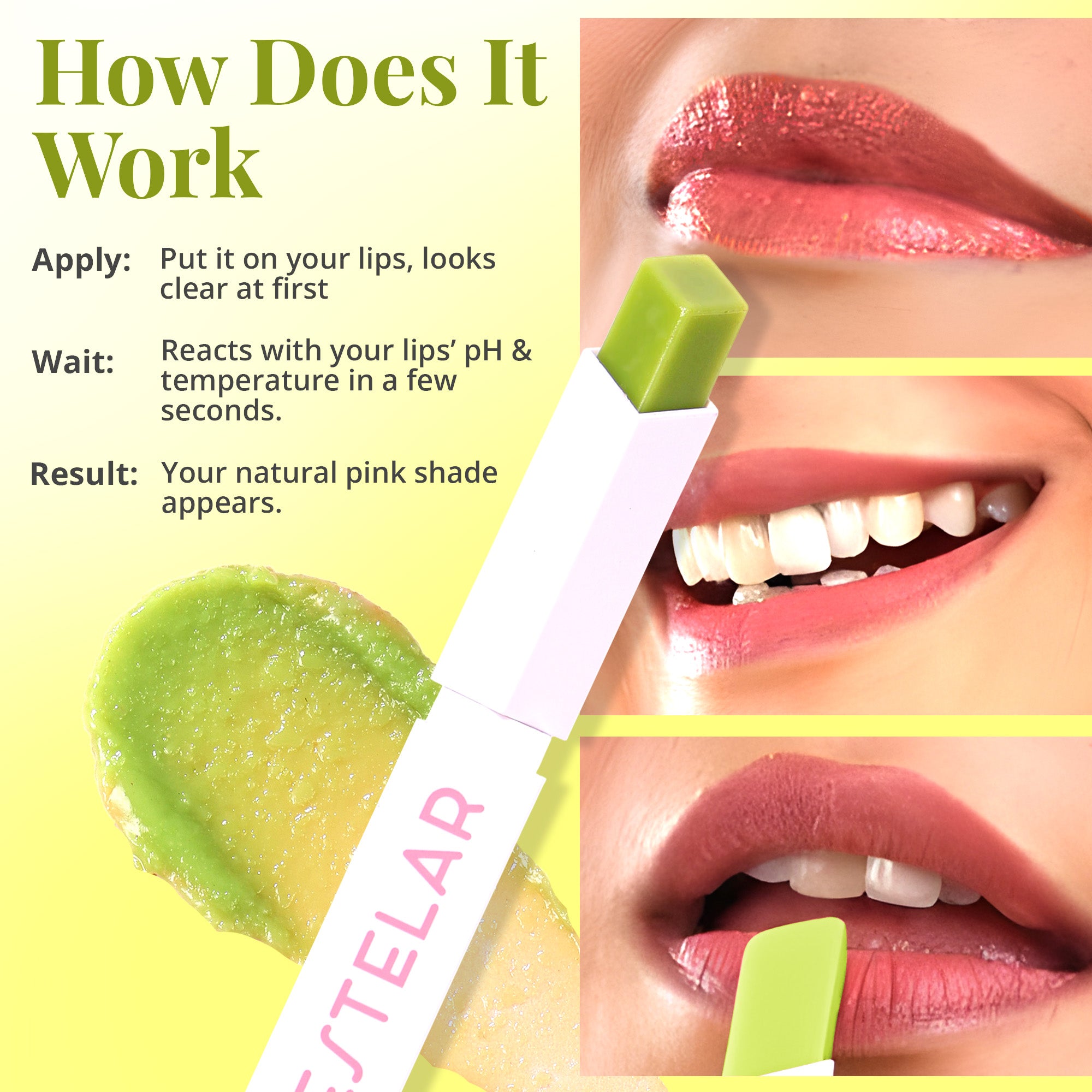 This tint plays by your pH — the shade may differ slightly from person to person (that’s the fun part!). Always patch-test before use and store in a cool, dry place. For external use only. Avoid eye contact and discontinue if irritation occurs. Treat it like skincare, not candy.