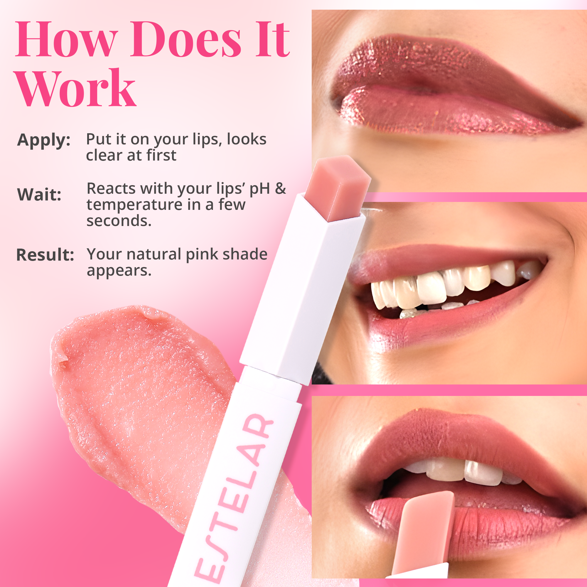 The pH-reactive tint adds a natural coral glow while keeping lips smooth and hydrated.