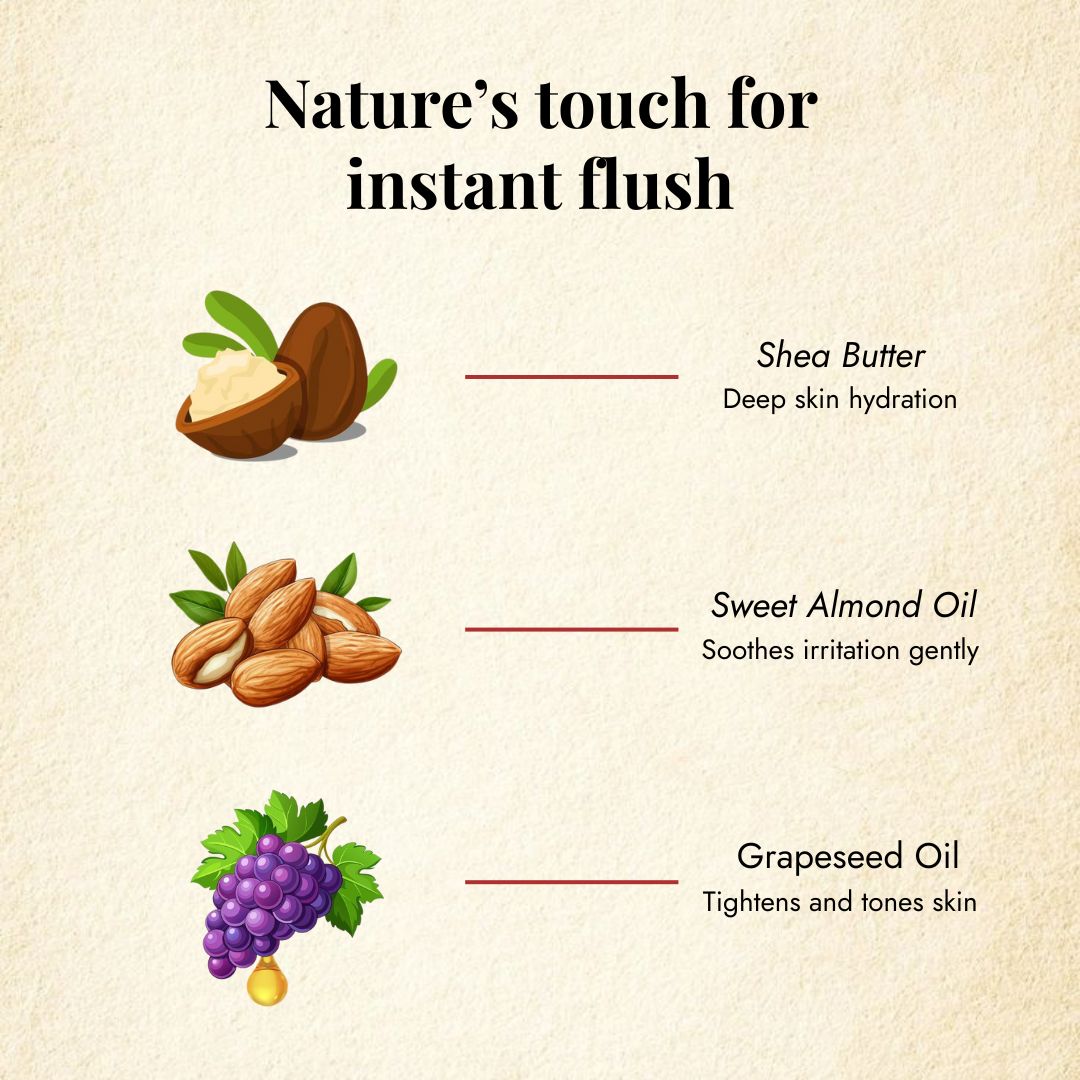 Sweet Almond Oil – Rich in vitamins A, E, and D; helps soothe skin, fade marks, and support anti-aging. Its light texture absorbs quickly and suits all skin types.